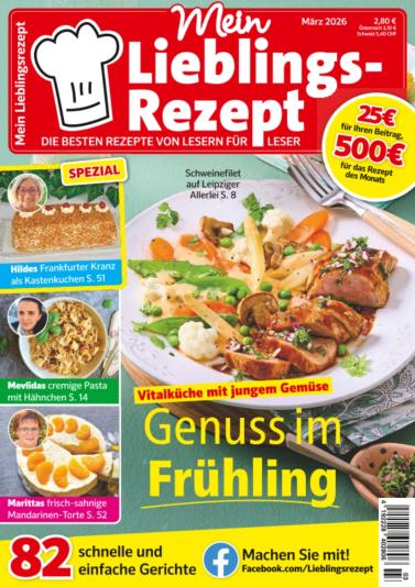mehr lesen, Hersteller- und Sicherheitsinformationen mehr lesen, Details zur ProduktsicherheitMein Lieblingsrezept ist ein innovatives Zeitschriften-Konzept, bei dem kochbegeisterte Leser-Köchinnen und -köche Ihre persönlichen Lieblingsrezepte für Sie kochen, dokumentieren und fotografieren. Das Ergebnis ist eine vielseitige Kochzeitschrift für jeden Geschmack.